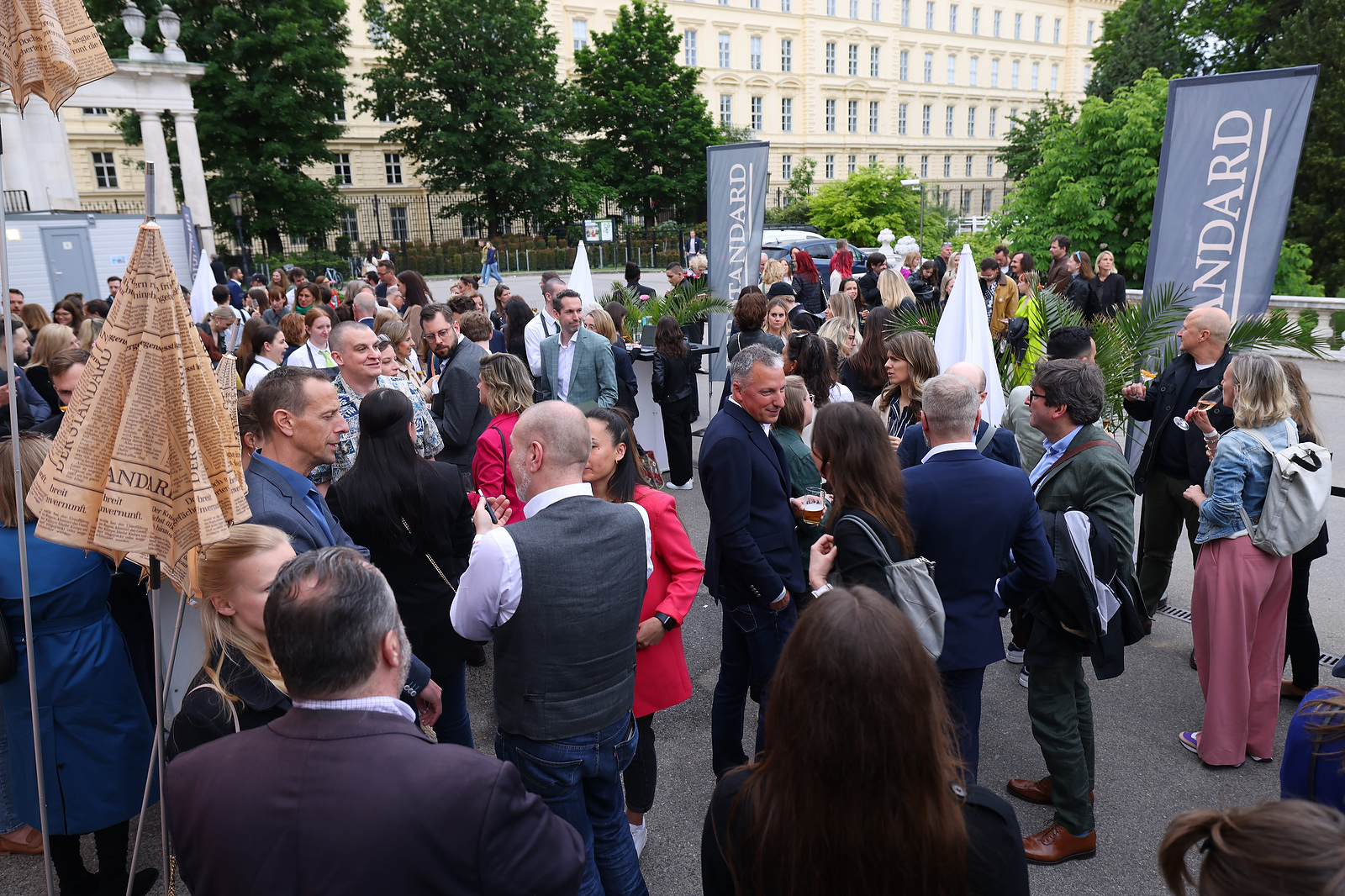 Rund 450 Gäste aus Wirtschaft und Werbung, Politik und Kultur feierten Donnerstagabend im Wiener Palmenhaus mit dem STANDARD. Der schon traditionelle Sommer-Cocktail für Kundinnen und Kunden galt diesmal zugleich einem Jubiläum: Vor 35 Jahren wurde der STANDARD gegründet – und hat sich seither vielfach neu erfunden.